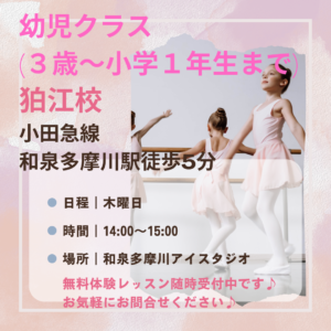 ミール・ベル バレエスクールのキッズクラスは、お子様の年齢と発達段階に合わせた丁寧な指導を行っています。